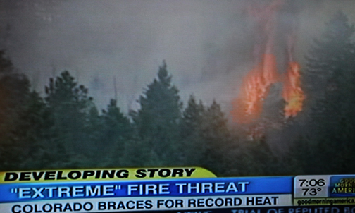 Nos recibió una temperatura superior a los 100º F (unos 38ºC), tremendo calor, en medio de la alarma local por los voraces fuegos forestales de los que las autoridades ya estaban convencidas que fueron obra de un arsonist, o sea, un pirómano, no del verano y la sequía. |