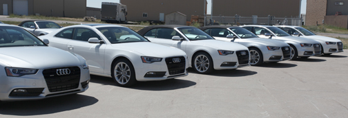 | Frente a la gran puerta corrediza se encontraba la flota con los diversos modelos de Audi a probar, |
