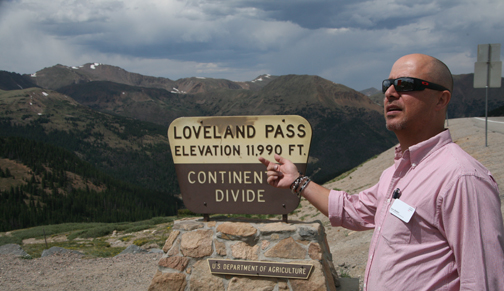 El recorrido tuvo primero una etapa de alrededor de 70 millas con cambio de conductor. Justo en este punto, estábamos a 12 mil de altura y allí hallamos una valla que indicaba el nacimiento de una pequeña carretera de apenas dos millas, que llegaba a los 14 mil. La señal advertía que ésa era la carretera más alta de los Estados Unidos. La segunda y última etapa agotó unas 40 millas. |