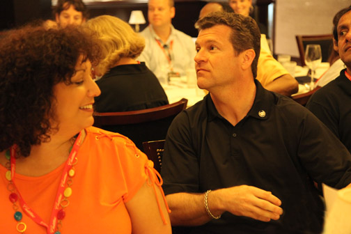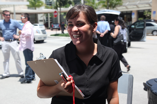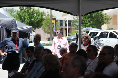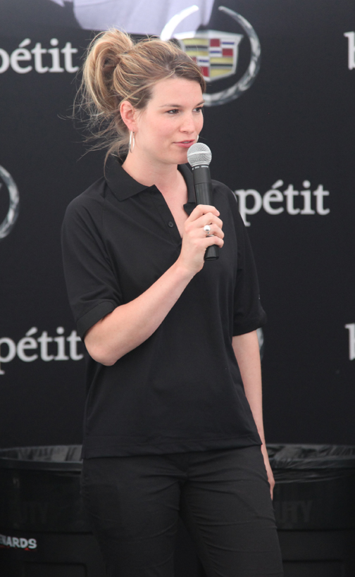 En la cita de Boca Raton, los periodistas de automovilismo fuimos agasajados con privilegios especiales. Asistimos, de la Capital del Sol, un puñado de ellos, todos miembros de SAMA: Jaime Flórez, Bill Adam, Paul Borden, Ileana Muñiz y Al Vázquez, Javier Mota y este servidor, Pepe Forte (foto encima mientras conversaba con Jim Vurpillat), convocados por el cordial Alex Vitale, PR de GM para la región quien —qué pena— a última hora hubo de poner a un lado el entusiasmo que desplegó en la invitación porque una severa gripe primaveral floridana nos privó de su presencia. Mas a modo de agradable compensación, contamos con la dedicación de la afable Monique Brentley (foto inmediatamente debajo), del Departamento de Comunicaciones de Cadillac. |