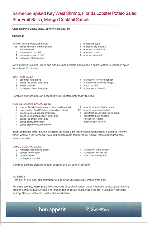 Siempre se ha dicho que los carros y el Rock’n Roll le vienen el uno al otro de perillas. En la actualidad, hay que agregar un nuevo aforismo: que los autos de lujo y la buena cocina se complementan mutuamente como anillo al dedo. Y eso fue lo que puso en práctica Cadillac al mediodía del sábado 23 de mayo través del Cadillac Culinary Challenge and Media Lunch en la refinada ciudad de Boca Raton, a medio centenar de millas de Miami, y ya le diremos más abajo el por qué de esta combinación inigualable. |