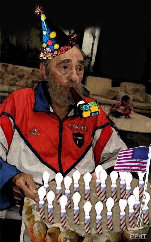 Pero allá están, en La Habana, celebrando tu octagésimotercero onomástico con una exhibición fotográfica —creo que justamente con 83 imágenes tuyas... ¡qué guatacas, por Dios!—. Fotografías que, con tu ego desmedido, ya has establecido en la mente de tus admiradores que no son grandes gracias al talento de cada fotógrafo y a las virtudes ópticas de cada cámara y lente, sino porque tú eres esas fotografías. Eso es el presente de galería. En casa supongo que te hayan agraciado con un buen paquete de pampers, que los regalos cambian con la edad...