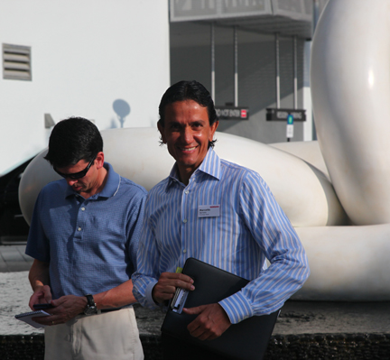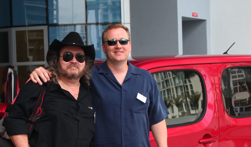| Pepe Forte (izq.), editor de i-Friedegg.com y conductor del programa radial AUTOMANIA de Univisión Radio, junto al ingeniero Rich Brettfeld al final de día. |