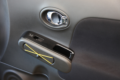 El Cube es un vehículo de buena visibilidad y como visto desde atrás es asimétrico, en la esquina lateral trasera del lado del pasajero se abre una tercera ventanilla vertical, estrecha, que elimina el terrible punto ciego que muchos autos padecen ahí y que dificulta los cambios de senda hacia la derecha. Las ventanas de las puerta delanteras tiene un efecto llamado de “marco fotográfico", que no sólo es muy agradable como diseño, sino que también favorece la buena visibilidad. |
