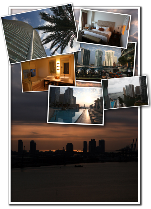 | Larry Dominique, de Nissan, explica a los asistentes por qué el Cube llega ahora a los Estados Unidos. Larry compartió en la víspera la cena en nuestra mesa. Debajo, algunas impresiones gráficas del Hotel Epic en Miami, Florida, donde Nissan hospedó a los periodistas de automovilismo invitados al evento. |