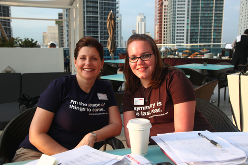 | Las eficientes Jill Mancini (a la izquierda), y Katie Nafius, organizadoras de la presentación. Todo lo tuvieron a punto... |