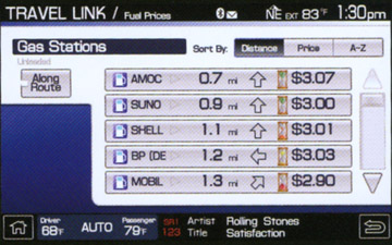 El sistema Travel Link™ informa al conductor la distancia a las gasolineras más cercanas, la marca y el precio del galón.