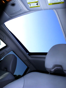 | Además de buen espacio entre las dos filas de asientos, ofrece un sunroof panorámico —el primero tan amplio que viera en un vehículo ya desde la generación pasada, un incremento sobre ensayos anteriores a éste en el Mitsubishi Montero y el Isuzu Trooper—, que encarna una abertura ideal para instalar una versión de bolsillo del telescopio del Monte Palomar. El volante es articulado y telescópico, forrado en piel, y los pedales, de aluminio. |