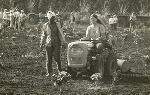 | Una joven norteamericana miembro de las Brigada Venceremos conduce un tractor Piccolino durante el fracasado proyecto cafetalero conocido como El Cordón de La Habana. |