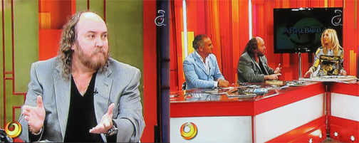| Pepe Forte, editor de este website y autor de la irónica valla FREE THE CUBAN FIVE, en el programa ARREBATADOS de María Laria, invitado al espacio para explicar su invención. |