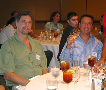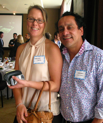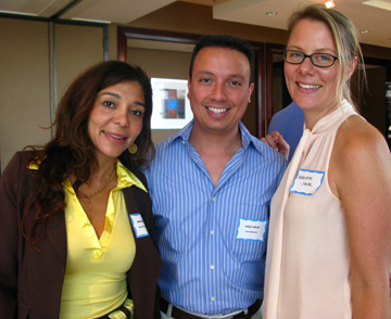 | Arriba: Marlem Bedoya, de Key Biscayne Magazine, a la derecha de Freddy Wiles, del canal de autos de Terra.com —centro—, y Kerstin Sachl. En la foto a la izquierda, Gigi Delgado, de Impulso Magazine. Gigi es la esposa de Giorgio Cerboncini, editor de la publicación, quien no pudo asistir al almuerzo por compromisos de trabajo. |
