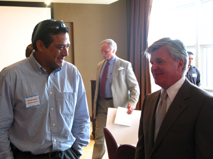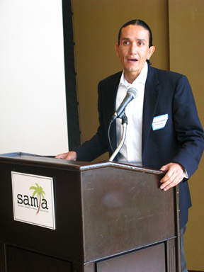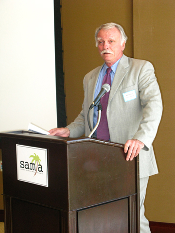 | Ron Beasley, Presidente de SAMA —a la derecha—, y Paul Borden —arriba—, vocal de la junta directiva de la asociación, abordan tópicos de interés de la entidad. |