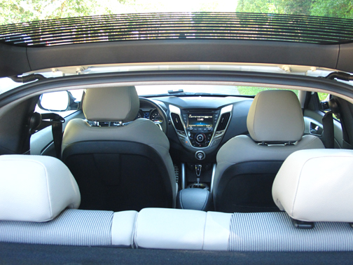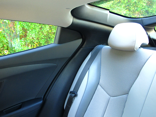 Tiene sólo cuatro plazas tiene el Veloster, porque lo que habría sido el asiento central en la banca trasera en una probable de tres, ha sido dedicado a un útil portavasos doble. |