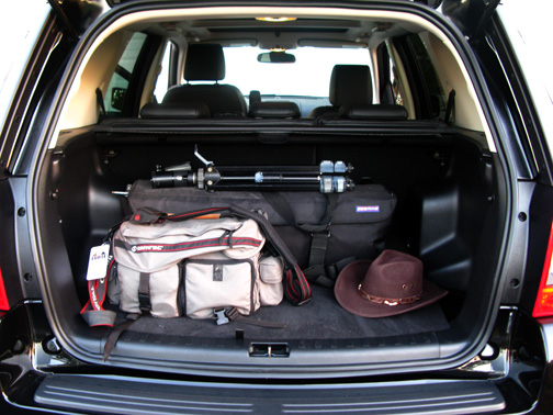 El tercio trasero de carga acomodó perfectamente mi parafernalia de fotografía, consistente en la maleta para las cámaras, el embalaje para el sistema de luces y un trípode de tamaño completo... ¡y aún quedó espacio para el sombrero! |