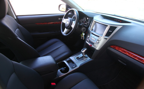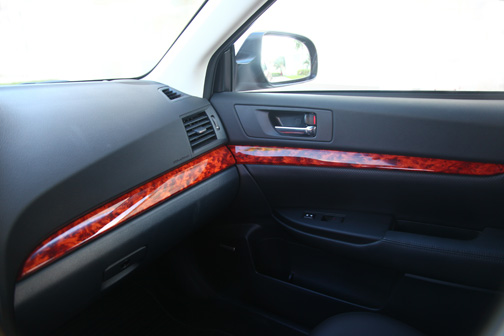 El interior de mi Legacy de prueba era sosfistcado y con distinción, consistente en una adecuada mezcla de plásticos de buena apariencia —aunque un poco duros para mi gusto— con toques en metal —¿aluminio... titanio?— y los adornos en madera tan especiales en apariencia —¡se separan del montón!— como han tenido los autos de Subaru en los años recientes.