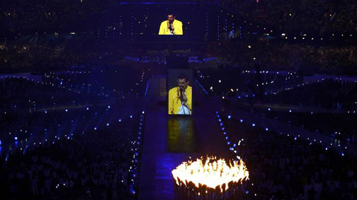 Juntos, se sumaron la voz de la escultural Jessie J —más paisaje para los ojos que para los oídos— que canto el hit de Queen We Will Rock You, cuya redoble introductorio de tambor se patea como porra en los partidos de fútbol en Inglaterra. |