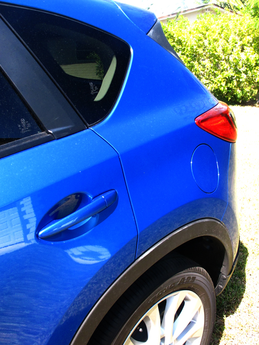Cuando se le aprecia de lado, el CX5 se revela por sus formas más como un SUV tradicional. Las puertas son amplias y de generoso acceso. En esto se aparea al Subaru Outback. Es un vehículo atractivo. Nuestra unidad de prueba era, según rezaban sus documentos, “azul mica”. |