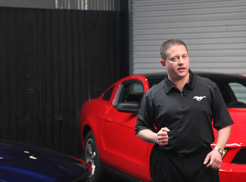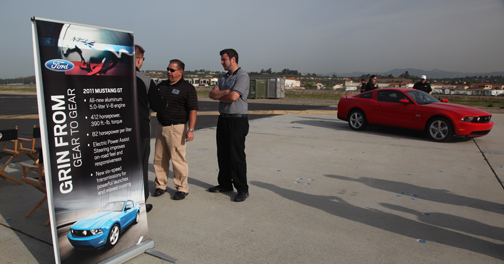 David Pericak hace la introducción del nuevo Mustang 2011. Inmediatamente, otros miembros clave de Ford como las cordiales Amy y Angie explican más detalles del vehículo y lo que nos depara el primer día de pruebas. |
