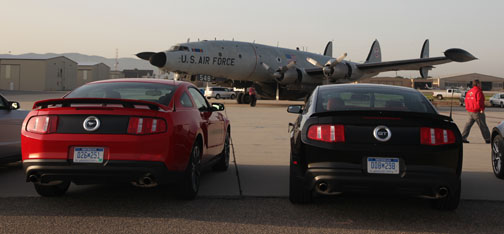 Como debido colofón, tras un madrugador desayuno lleno de anticipación, condujimos en la mañana del miércoles 24 el nuevo 5.0 por las deliciosas carreteras de la región hasta el Camarillo Airport, donde al pie de un vetusto Lockheed Super G Constellation versión militar (EC-121) que todavía vuela, pudimos hacer un drag test al caballo de estreno. Aquí pude reivindicar mi honor mancillado del día antes, cuando logré 87.68mph en un octavo de milla a bordo de un Mustang, uno de los scores más altos entre los participantes. Mas, compensación emocional aparte, como siempre, no se trata de competencia personal sino de medir el auto que estamos probando, en este caso otra vez contra… ¿adivinó?, el Camaro.