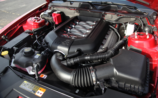 El nuevo Ford Mustang GT del 2011 revive la exitosa cilindrada de 5.0 litros, cuya producción cesara hace 15 años. Mas la coincidencia de siluetas entre aquella planta y la de ahora es sólo de litraje. El viejo 5.0 generaba 240hp y 285 lb. x pie de torque, números que han quedado muy detrás con los 412 caballos y las 390 libras de este nuevo V-8. todo de aluminio con 4 válvulas por cilindro y que además, es capaz del prodigioso rendimiento de 26mpg en la carretera, con lo que se convierte en líder en su categoría. Las cifras de consumo de gasolina son las siguientes: 18mpg en la ciudad y 25 en la carretera en caja automática, y 17/26 en manual. Esta planta acopla lo mismo a transmisión automática que manual, ambas de 6 velocidades.
