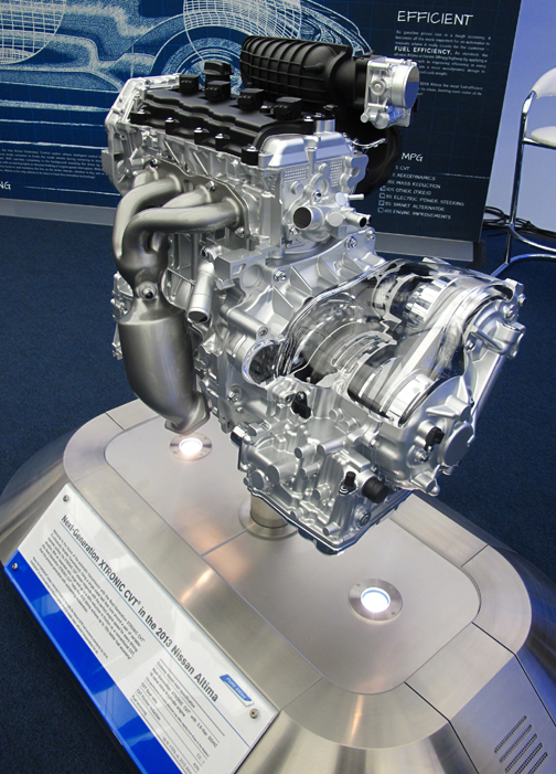 La firma es la que más modelos ostenta de este tipo de transmisión, de modo que ahora los componentes de la CVT XTronic del Altima ’13 son 70% nuevos y con un 40% menos de fricción. Particularmente sensible a las CVT, aguzé el oído para discernir si se comportaba tradicionalmente ruidosa en sum matrimonio con el motor de 4 cilindros. Comparada con el V-6, claro que fue menos fluida, pero no lo chillona que resulta en coches de menos tamaño de la marca como el Versa o el Sentra. |