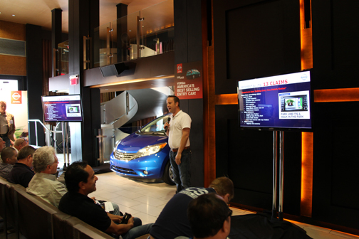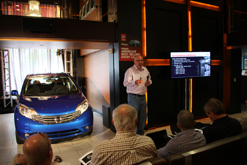 La prueba de manejo se efectuó dentro de San Diego y en una hermosa jornada por carreteras cercanas a la ciudad y que hemos navegado anteriormente. La ruta inicial fue desde el Hotel Andaz en la Calle G en San Diego, hasta Sharper Studios; de ahí a Belly Up; de Belly Up a Ventura Cove, y a partir de este punto de vuelta al Andaz, en un recorrido que sumó por etapas unas 120 millas de distancia. La prueba de manejo fue relativamente breve porque el evento ofreció la opción de volver al hotel después de almuerzo en el furgón NV200, y eso fue lo que escogimos. Cuando nos toque el Note durante una semana como parte de la rotación de pruebas del coche, ampliaremos la experiencia a su volante. |
