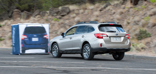 Pero ahora añade la tercera generación del sistema EyeSight, capaz de frenar al vehículo hasta 30 MPH si el conductor se distrae. En el evento, a mitad de camino, Subaru habilitó al respecto un estacionamiento para examinar sistema, y el auto se detuvo en seco a esa velocidad a apenas un par de pies de pegarle a la valla de ensayo sin que interviniéramos en absoluto en el frenado del vehículo. |
