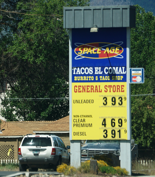 Antes de iniciar la prueba off-road, paramos momentáneamente en Sisters, una pequeña ciudad al pie de la majestuosa tríada orográfica de los picos conocidos como Las Tres Hermanas (de ahí el nombre) de nieves perpetuas, y cuya visión nos acompañó todo el tiempo y sirvió de portentosa decoración a nuestras fotografías. |