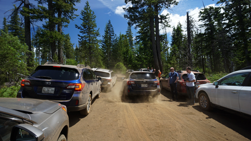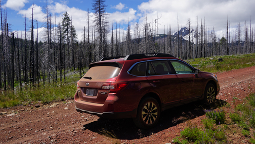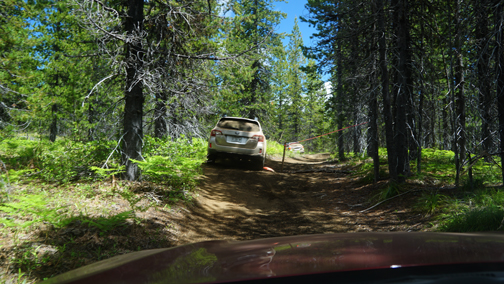 Según nos adentrábamos más, las condiciones del camino empeoraban… es decir, irónicamente mejoraban para lo que deseábamos y fuimos a hacer allí. Se hacía más estrecho, abrasivo por la proximidad de las coníferas y la vegetación general, más presencia de lodo y de superficie arenosa o pedregosa —o un coctel que mezclaba todo esto— para una ausencia de agarre, de la que sin embargo el Outback ni se enteró, mientras las depresiones se hacían más agudas y frecuentes.