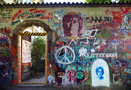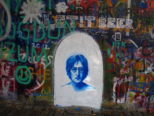 El turista que visite Praga no debe perderse la llamada Pared de Lennon, un interesante bastión mundial de la contracultura. Es un muro que los jóvenes espontáneamente dedicaron a la memoria del ex-Beatle, y que el gobierno comunista de Gustav Husák se afanaba en pintar una y otra vez para ocultar los graffiti… hasta que perdió la batalla cuando fue eliminado el horrible sistema del país. Irónicamente, los estudiantes de aquella época le llamaban a la afición "lennonismo" parodiando lal palabra ideológica leninismo.