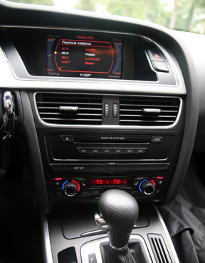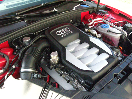 Uno puede diluirse en mil detalles del A5, pero lo que no se puede obviar es su poderoso motor V-8 de 32 válvulas y cilindrada, capaz degenerar 354hp, apareada a transmisión de 6 velocidades, ya manual o automática tipo Tiptronic (por suerte, mi unidad de pruebas era manual). Y cuenta con la exclusiva AWD Quattro de Audi. Con una relación de 40%/60% delante-detrás; este auto encanta al conductor por su tiro y un balance impecable de sensación vigorosa de tracción trasera con preciso control delantero. |