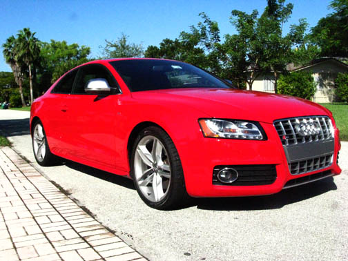 El 2008 va a ser uno histórico para Audi y de excitante recordación para sus seguidores en el mercado norteamericano, porque es el año en que o bien fueron estrenados o bien fueron presentados modelos memorables: el nuevo A4, el A5 y el S5. El S5 es nuestro feliz sujeto de turno, cuyo análisis me delatará como un ser carente de razonabilidad o de imparcialidad porque, ¿quién no queda enamorado de un coche así? |