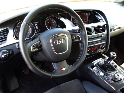 Manejar el S5 es... es... oh, I don't know... satisfacer todos los sentidos, creo. Y hasta jugar a la experiencia extracorporal porque uno imagina cómo se ve desde fuera al volante de esta hermosura de coche. Sin embargo, en cuanto al supuesto lenguaje de un bólido así, quedé sorprendido porque el pedal del clutch y la palanca de cambios son suaves, no recios como los del S4.