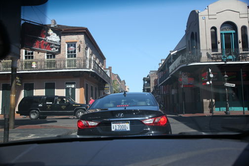 Al día siguiente, probamos el auto desde New Orleans hasta Baton Rouge, ambas ciudades distantes unas 70 millas entre sí. En la mañana temprano, tras el breefing tecnico con Michael Deitz, abordamos los autos aparcados frente al hotel, y cruzamos el barrio francés no a pie como la víspera, sino a bordo del Sonata para emprender la ruta de prueba. |