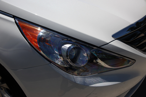 El Sonata 2011, de los tres ángulos que se puede contemplar —por delante, de perfil y por detrás— creemos que desde donde mejor luce es de lado, quizás porque ahí se manifiesta el llamado concepto de diseño Fluidic Sculpture, cuyo espíritu indica que tal parece como si el auto hubiese sido esculpido por una corriente de agua —¿una reinterpretación del Chrysler Airflow de 1934 a través de la magia de la hidráulica?—. Se trata de un conjunto armónico que mezcla en dosis perfectas la elegancia con aliento deportivo. |