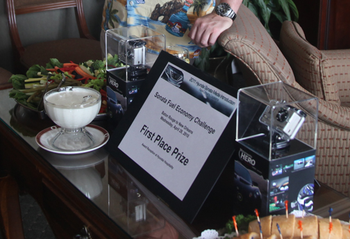 De vuelta de Baton Rouge fue que hicimos la prueba de eficiencia del Sonata 2011. Sergio y este servidor obtuvimos el tecer lugar con una eficiencia promedio de 44.2mpg. Fuimos superados por otras dos parejas de periodistas que lograron 48.8 y 52.1. Este número por encima de 52 millas, también lo logró nuestro amigo y colega Jaime Flórez en semejante prueba un mes antes en San Diego, California. Sin embargo, en un instante del recorrido, según indicó el marcador de consumo instantáneo, nuestra unidad de pruebas alcanzó las 45mpg de eficiencia. |