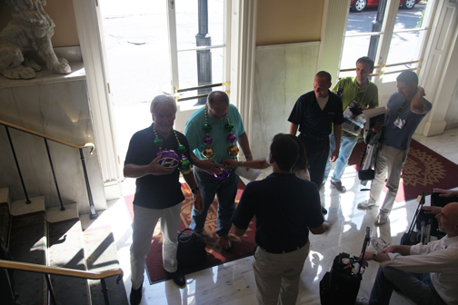 | El premio al primer lugar consistió en una cámara de video con pedestal de ventosa, codiciadas por todos los periodistas de automovilismo por su versatilidad para hacer documentales. Todos fuimos agraciados con los célebres New Orleans beads o collares típico de allí, que adornan la celebración del Mardi Gras. |