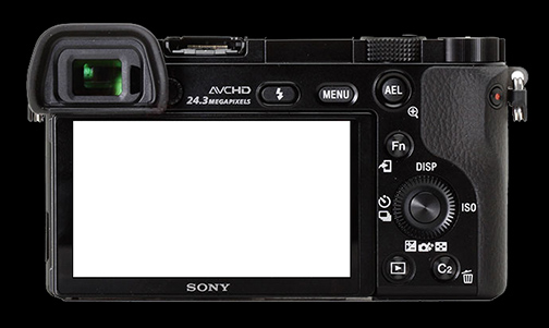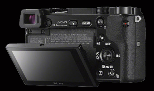En el dorso de la 6000 nos topamos con que la pantalla es tenuemente más grande que en la NEX-6. Esta pantalla, tal cual en la 6, es articulada pero únicamente hacia arriba y hacia abajo, nunca lateralmente.