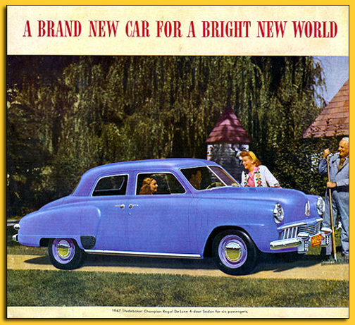 | Al terminar la guerra, Studebaker, como las demás compañías, se deja llevar por la esperanzadora corriente futurística y así nace el citado Starlight, que parecía un avión sin alas, pero con muchas ganas de volar. |
