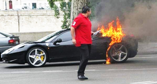 Posted Sep.5/2010 • Donde quiera cuecen habas. Una marca tan cara como Ferrari está haciendo un recall por su modelo 458 Italia, que se incendia espontáneamente. El origen del problema radica en un adhesivo empleado en el carro, que puede inflamarse por sobrecalentamiento, y que está en la bóveda de las ruedas. Unas mil 250 unidades han sido convocadas a reparación.