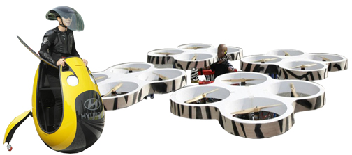 Posted on April 10/2013 • Hyundai ha presentado un carro volador, como parte de su concurso interno de diseño. El vehículo, definido como un “auto volante multi-rotor” se anima gracias a 4 motores eléctricos con propela en un concepto derivado del helicóptero—el mismo del juguete volante de las tiendas de tecnología avanzada—,que lo mantiene levitando sobre el suelo.