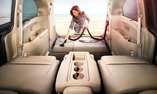 El dispositivo, con manguera retráctil, alcanza todo rincón del vehículo y ofrece un juego de boquillas para todos sus compartimientos. Trabaja con el motor de la minivan y aún permanece activa 8 minutos después que éste ha sido apagado.