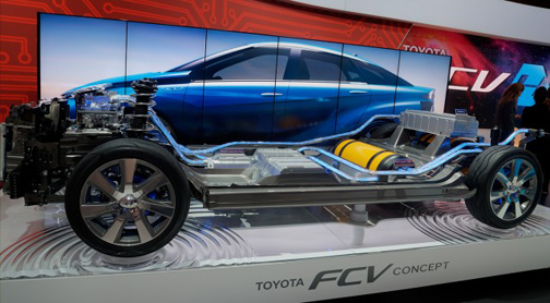 Posted on Jan.12/2014 • Sin duda la estrella del CES 2014 fue el Toyota FCV de célula de combustible presentado allí, un revolucionario vehículo que incluye planes para, mediante un adaptador, dar electricidad a la casa de quien lo maneje. El vehículo, de 4 plazas, parece un Prius futurístico, de tecnología muy avanzada.