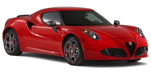 El Alfa Romeo 4C es un cupé, un deportivo muy atractivo de tracción trasera, de cuatro cilindros y 1.4 litros, con inyección turbocargada y transmisión manual de doble embrague de 6 velocidades. Genera 240HP y 260 libras por pie de torsión, para un sprint de 62mph en sólo 4.5 segundos. Es un coche muy liviano, pesa 1973 libras; es más ligero aún que el Lotus Exige (1984 lb.). Su precio es más bajo que el del 8C: $54,000. |