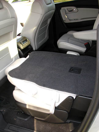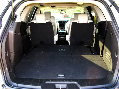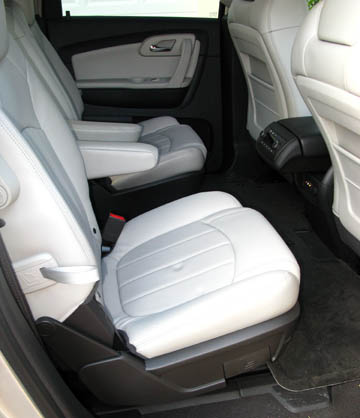Aunque el Traverse, como tal le corresponde siendo un Chevy, naturalmente que casi como que por "ley", o "tradición", es un poco menos pretencioso que sus parientes más elevados, pero eso no significa que esté carente de lujos y comodidades, y hereda la esencia de los otros. Es un vehículo que puede acomodar hasta un máximo de 8 pasajeros repartidos en tres filas de asientos, y claro que trae precio más bajo que los demás del clan.