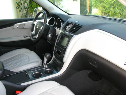 El diseño interior es muy agradable y de buen acabado. Para este servidor, que estuvo criticando los interiores de GM hace unos 10 años por su falta de acabado y sobre todo por la apariencia limosnera de los plásticos empleados, ahora hay que dedicarle a la compañía una sonora ovación al respecto cuando detallamos al Traverse por dentro. Por dentro, el Traverse es un vehículo que llena todas las espectatitivas, aunque no sea, por ejemplo, de mi gusto personal, la linea u horizonte de la pizarra un poco alta. Sin embargo, este elemento es del favor de muchos consumidores y en gran parte representa un tradición del diseño automotriz norteamericano. Claro que aquí falta algún que otro detalle de un poco más de distinción a bordo de su primos en GMC y Buick, pero no puede decirse que el interior del Chevy sea descuidado y mucho menos anémico. |