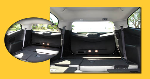 La tercera bancada de asientos es abatible, así como la espalda de las butacas de la segunda, así que una vez aplastadas contra el piso ofrecen una extensa superficie nivelada para recibir carga. Son 117 pies cúbicos de capacidad de carga de este modo, pero aún con las espaldas de lo asientos erectas todavía reserva unos 24 para equipaje. |