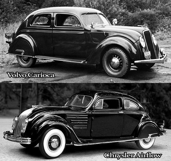 Con este éxito inicial en el bolsillo, pero de corte fundacional, para 1936 Volvo lanzó su primer streamlined car, es decir, un coche estilizado para competir con los modelos norteamericanos —en realidad estaba influido por el estilo americano, en particular por el revolucionario Chrysler Airflow—, el PV36, o Carioca (muchos analistas concuerdan en que los años 30 representan la década gloriosa del diseño automotriz). |